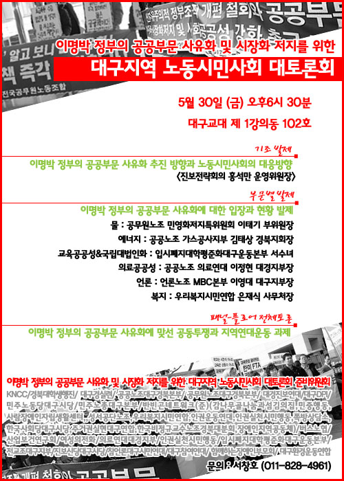 [5/30] Åä·Ðȸ 'À̸í¹Ú Á¤ºÎÀÇ °ø°øºÎºÐ »çÀ¯¿Í ¹× ½ÃÀåÈ ÀúÁö¸¦ À§ÇÑ ´ë±¸Áö¿ª ³ëµ¿½Ã¹Î»çȸ ´ëÅä·Ðȸ