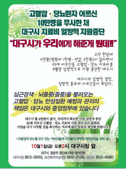 [10¿ù 1ÀÏ] °íÇ÷¾Ð°ú ´ç´¢¸¦ °®°í ÀÖ´Â ¾î¸£½Åµé°ú ½Ã¹ÎµéÀÇ ´ç´çÇÑ ±Ç¸®¼±¾ðÀ» À§ÇÑ ³¯