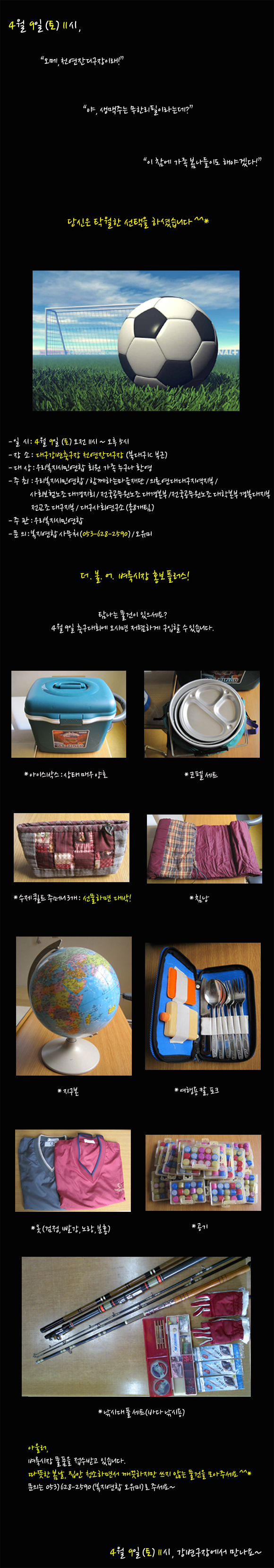 [4¿ù9ÀÏ Ã౸´ëȸ] º·è½ÃÀåµµ ¿î¿µÇÕ´Ï´Ù! (¹°Ç° ¸ðÁýÁß)