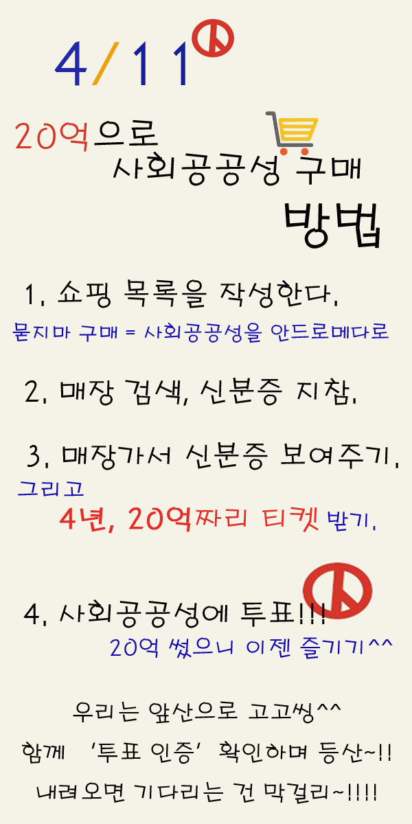 ±×¸®°í 4¿ù11ÀÏ ÃѼ± ¸ðµÎ ÅõÇ¥ÇÏ°í ¾Õ»ê »êÇà ÇÔ²²ÇØ~¿ä.