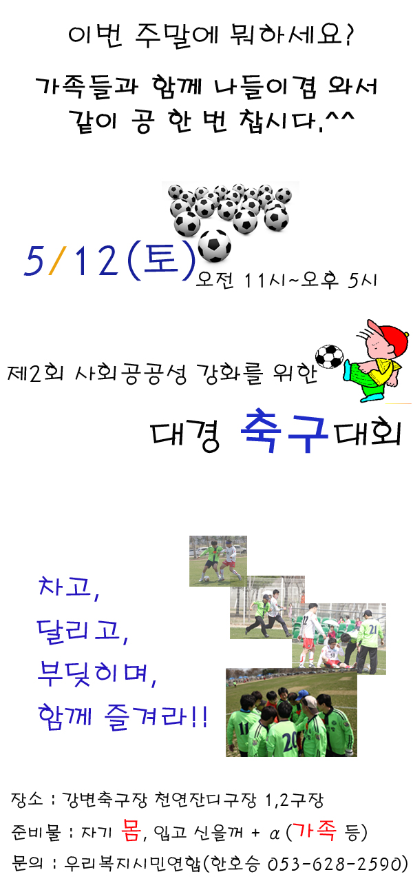 Â÷°í, ´Þ¸®°í, ºÎµúÈ÷¸ç, ÇÔ²² Áñ°Ü¶ó!! 'Á¦2ȸ »çȸ°ø°ø¼º °È¸¦ À§ÇÑ ´ë°æÃ౸´ëȸ'