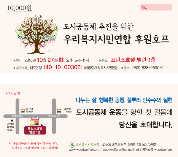 µµ½Ã°øµ¿Ã¼ ÃßÁøÀ» À§ÇÑ ¿ì¸®º¹Áö½Ã¹Î¿¬ÇÕ ÈÄ¿øÇà»ç2015.09.17 ±Û¾´ÀÌ : º¹Áö¿¬ÇÕ |