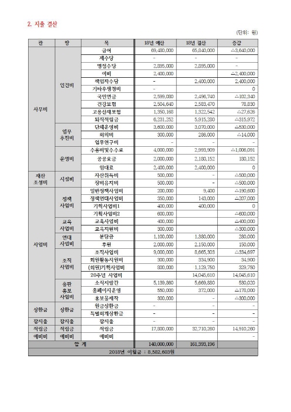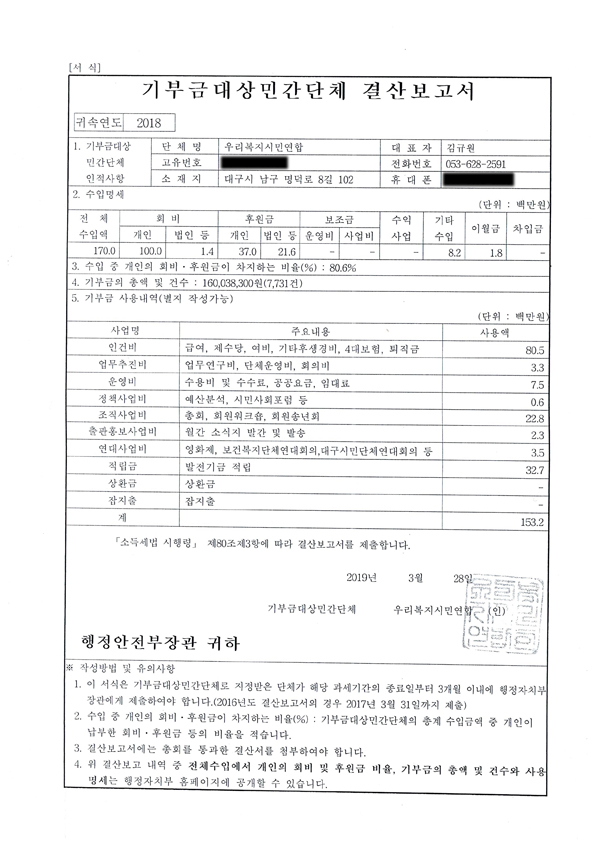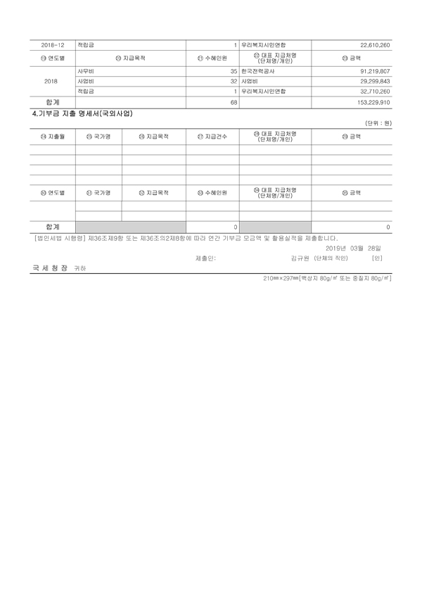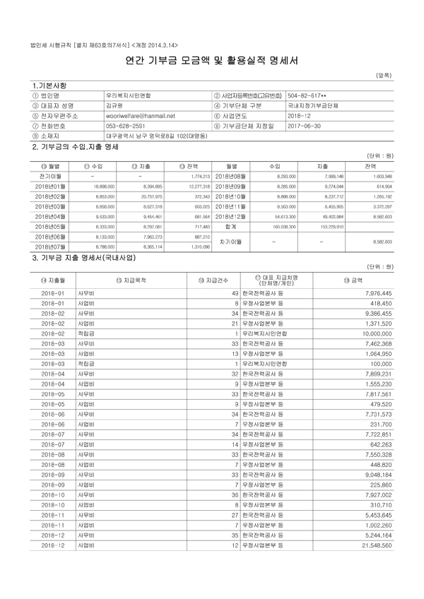 ¿ì¸®º¹Áö½Ã¹Î¿¬ÇÕ 2018³â¿¬°£ ±âºÎ±Ý ¸ð±Ý¾× ¹× Ȱ¿ë½ÇÀû ¸í¼¼¼ ¹× Ȱ¿ë½ÇÀû ¸í¼¼¼¿Í °á»êº¸°í¼