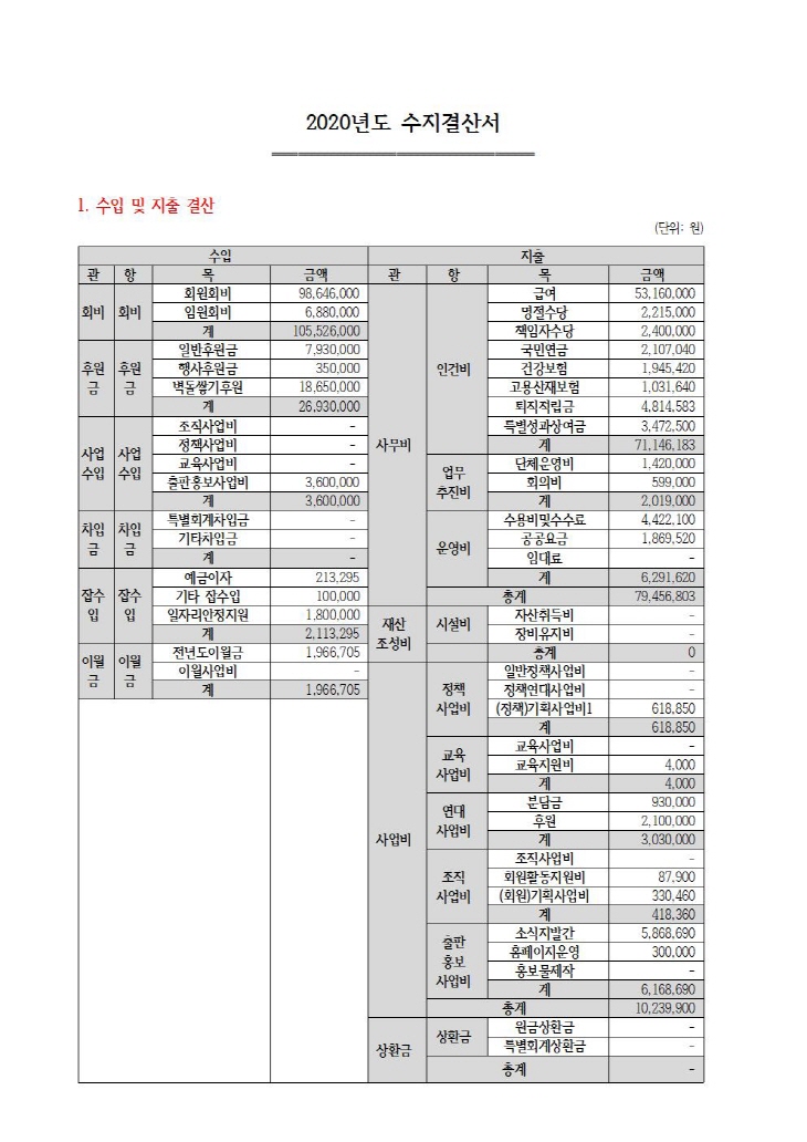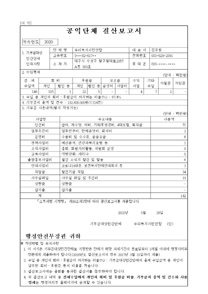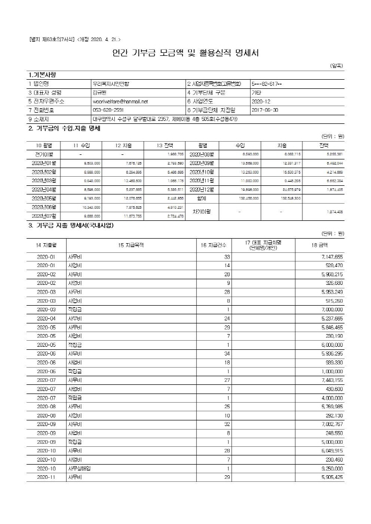 ¿ì¸®º¹Áö½Ã¹Î¿¬ÇÕ 2020³â ¿¬°£ ±âºÎ±Ý ¸ð±Ý¾× ¹× Ȱ¿ë½ÇÀû ¸í¼¼¼¿Í °á»êº¸°í¼
