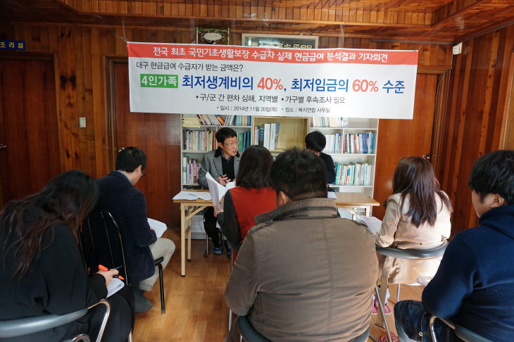 2014.11.20. ±¹¹Î±âÃÊ»ýȰ¼ö±ÞÀÚ ±âÀÚȸ°ß. Àü±¹ ÃÖÃÊ ±¹¹Î±âÃÊ »ýȰº¸Àå ¼ö±ÞÀÚ ½ÇÁ¦ Çö±Ý±Þ¿© ºÐ¼® °á°ú ±âÀÚȸ°ß