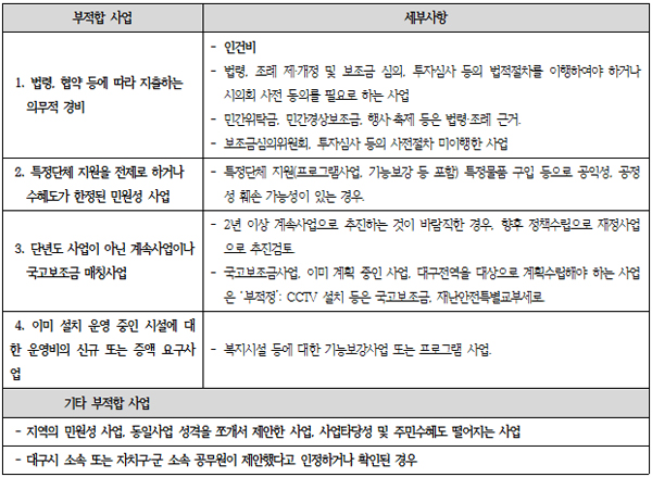¢º ¶ÇÇÑ Æ¯Á¤´Üü Áö¿ø(ÇÁ·Î±×·¥»ç¾÷, ±â´Éº¸° µî), µ¿ÀÏ»ç¾÷ ¼º°ÝÀ» Âɰ³¼ Á¦¾ÈÇÑ »ç¾÷µµ ¸¹ÀÌ È®ÀεǾú´Ù. ÀÌ´Â ´ë±¸½Ã°¡ Á¶·Ê¿¡ ±Ù°ÅÇØ ±ÔÁ¤ÇÑ¡® ºÎÀûÇÕ »ç¾÷¡¯.