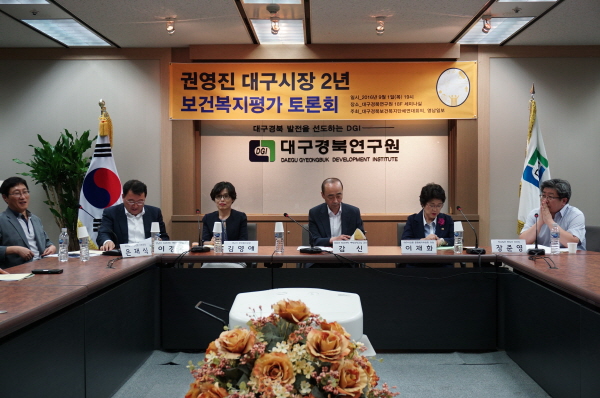 ÀºÀç½Ä _ º¹Áö¿¬ÇÕ »ç¹«Ã³Àå ±Ç¿µÁø ´ë±¸½ÃÀå ÃëÀÓ 2³â, »ó¹Ý±â ´ë±¸½ÃÀÇ º¸°Çº¹ÁöÁ¤Ã¥À» Æò°¡ÇÏ´Â ÀÚ¸®°¡ 9¿ù 1ÀÏ(¸ñ) ¿ÀÈÄ7½Ã ´ë±¸°æºÏ¿¬±¸¿ø¿¡¼ 50¸í ÀÌ»óÀÌ Âü¼®ÇÑ °¡¿îµ¥ ´ë±¸°æºÏº¸°Çº¹Áö´Üü¿¬´ëȸÀÇ¿Í ¿µ³²ÀϺ¸ °øµ¿ÁÖÃÖ·Î ¿·È´Ù. À̳¯ Åä·Ðȸ´Â °¨½Å °æºÏ´ë ÀÇÇÐÀü¹®´ëÇпø ±³¼öÀÇ »çȸ·Î ±è¿µ¾Ö ´ë±¸½Ã º¸°Çº¹Áö±¹Àå, À̰æ¼ö ¿µ³²´ë ÀÇ´ë ¿¹¹æÀÇÇб³½Ç ±³¼ö, ÀÌÀçÈ ´ë±¸½ÃÀÇȸ ¹®Èº¹ÁöÀ§¿øÈ¸ ÀÇ¿ø, ÀåÁØ¿µ ¿µ³²ÀϺ¸ ÆíÁý±¹ ºÎ±¹Àå, ÀºÀç½Ä ¿ì¸®º¹Áö½Ã¹Î¿¬ÇÕ »ç¹«±¹ÀåÀÌ Æä³Î·Î Âü¿©ÇØ ¾à150ºÐ°£ TVÅä·Ð ¹æ½ÄÀ¸·Î ÁøÇàµÇ¾ú´Ù.
