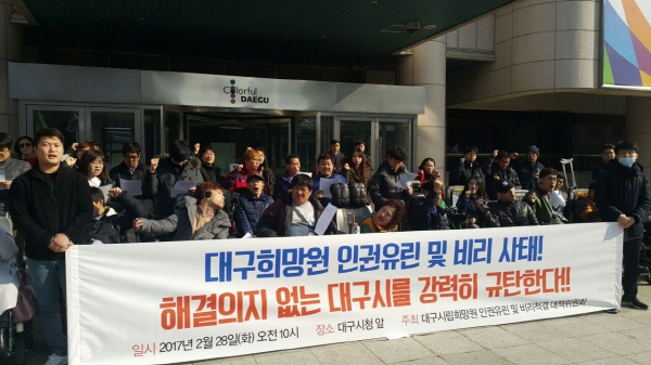 ´ë±¸½Ã´Â ±Ý°ú¿ÁÁ¶ ¹Î°£À§Å¹ ½ÅºÀÀÚµéÀÌ´Ù. Áö³ÇØ 11¿ù 7ÀÏ ¿î¿µ±ÇÀÌ ¹Ý³³µÇ¾ú°í, 11¿ù 28ÀÏ ±¹°¡ÀαÇÀ§°¡ À§Å¹ÇØÁ¦¸¦ ±Ç°íÇßÁö¸¸, ´ë±¸½Ã´Â ¾ÆÁ÷µµ À§Å¹ÇØÁ¦¸¦ ÇÏÁö ¾Ê¾Ò´Ù. ±× »çÀÌ Èñ¸Á¿øÀº ¾Æ¼ö¶óÀåÀ¸·Î º¯Çϰí ÀÖ´Ù. ±â¼ÒµÈ °£ºÎµéÀº ¼ÒÀ§ ´ëÇ¥Àû ºÎ¿ªÀÚµé·Î¼ ÀçÆÇ¿¡¸¸ ½Å°æ¾²°í ÀÖ°í, Á÷¿øµéÀº °í¿ë½Â°è¿¡, Á¤º¸°¡ Â÷´ÜµÈ »ýȰÀÎÀº ºÒ¾ÈÇÏ´Ù. ¼ÒÀ§ ºÎ¿ªÀÚµéÀº »ýȰÀÎÀ» ºÎÃß°Ü ÀÚ±â »ì±æ¸¸À» ã°í ÀÖ´Ù. ´ë±¸½Ã´Â °è¼ÓÇØ¼ °¥µî°ú È¥¶õÀ» ¾ß±âÇÏ´Â Àç´Ü°ú ºÎ¿ªÀÚµéÀ» ±×³É µÐ ä, ¿ÀÁ÷ ¹Î°£À§Å¹¸¸ »ý°¢Çϰí ÀÖ´Ù. ÀÌ¿¡ ´ë±¸Èñ¸Á¿ø´ëÃ¥À§´Â 2¿ù 28ÀÏ ´ë±¸½Ãû ¾Õ ±âÀÚȸ°ßÀ» ÅëÇØ ´ë±¸½Ã¿ÍÀÇ Àü¸éÅõÀïÀ» ¼±¾ðÇß´Ù. 3¿ù 6ÀÏ ±³È²Ã» ´ë»ç¿¡°Ô ÇÁ¶õÄ¡½ºÄÚ±³È²¿¡°Ô Àü´ÞÇÒ ¼Çѹ®µµ Àü´ÞÇß´Ù. ¾ÕÀ¸·Î ´Ù¾çÇÑ ºñ°ø½ÄÀû Ȱµ¿À» ÅëÇØ ·Î¸¶±³È²Ã»¿¡ Èñ¸Á¿ø »çÅÂ ÇØ°á°ú Ã¥ÀÓÀÚ Ã³¹úÀ» ¿ä±¸ÇÒ °èȹÀÌ´Ù. »ç½Ç, ¸î Â÷·Ê ÇØ°á±¹¸éµµ ÀÖ¾úÁö¸¸ õÁÖ±³´ë±¸´ë±³±¸¿Í ´ë±¸½Ã´Â ¸ðµÎ °È¾îá´Ù. Áø½Ç±Ô¸í°ú Ã¥ÀÓÀÚó¹ú, °øÀû¿î¿µ°ú Å»½Ã¼³, ¼Ò±Ô¸ðÈ¿Í ½Ã¼³Æó¼â ¹× ±â´ÉÀüȯ µîÀ» À§ÇÑ ÅõÀïÀº °è¼ÓµÈ´Ù. Ãâó : ÇÔ²²ÇÏ´Â ¼¼»ó 2017³â 3¿ùÈ£ Åë±Ç 234È£ |
