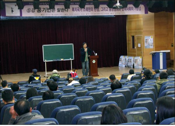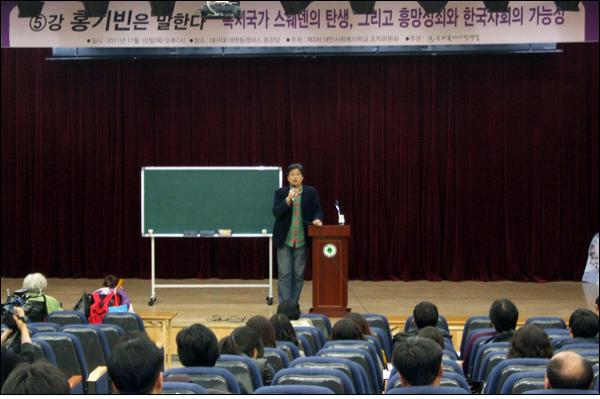 ¡ã Á¤Ä¡°æÁ¦ÇÐÀÚ È«±âºó ±Û·Î¹úÁ¤Ä¡°æÁ¦¿¬±¸¼ÒÀåÀÇ 'º¹Áö±¹°¡ ½º¿þµ§ÀÇ Åº»ý, ±×¸®°í Èï¸Á¼º¼è¿Í ÀïÁ¡µé' °¿¬ÀÌ ´ë±¸´ë ´ë¸íµ¿ Ä·ÆÛ½º ´ë°´ç¿¡¼ ¿·È´Ù (2011.11.10) / »çÁø. ÆòÈ´º½º ¹Ú±¤ÀÏ ±âÀÚ